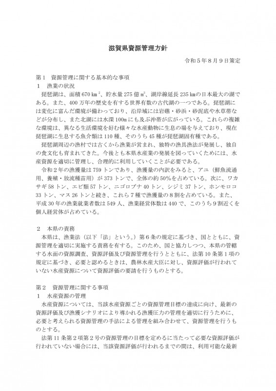 滋賀県資源管理方針 [滋賀県農政水産部水産課][編] 滋賀県/大津 令和5年(2023年) 1501004 |