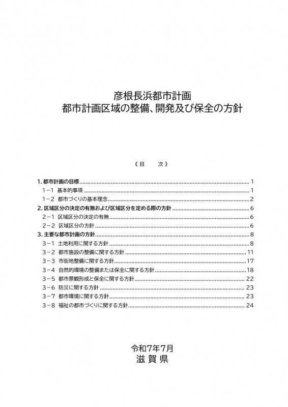 彦根長浜都市計画 都市計画区域の整備、開発及び保全の方針 [滋賀県土木交通部都市計画課][編] 滋賀県/大津 令和7年(2025年) 1501011 |