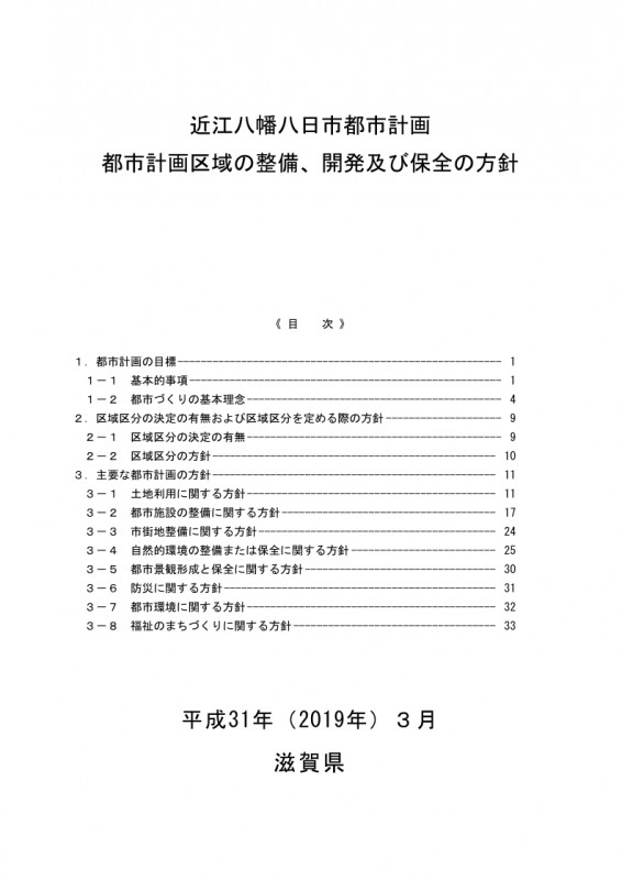 近江八幡八日市都市計画 都市計画区域の整備、開発及び保全の方針