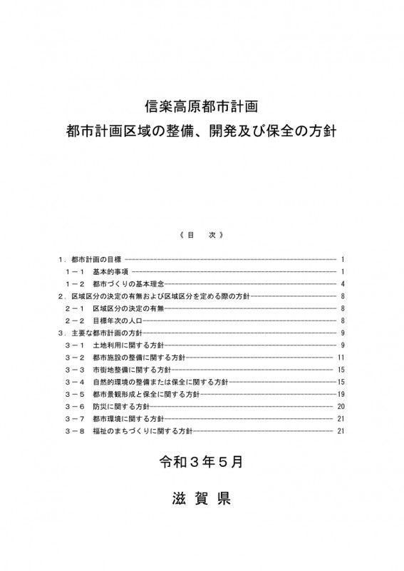 信楽高原都市計画 都市計画区域の整備、開発及び保全の方針 [滋賀県土木交通部都市計画課][編] 滋賀県/大津 令和3年(2021年) 1501015 |