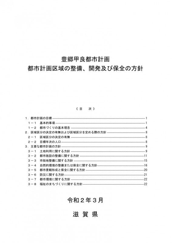 豊郷甲良都市計画 都市計画区域の整備、開発及び保全の方針 [滋賀県土木交通部都市計画課][編] 滋賀県/大津 令和2年(2020年) 1501017 |