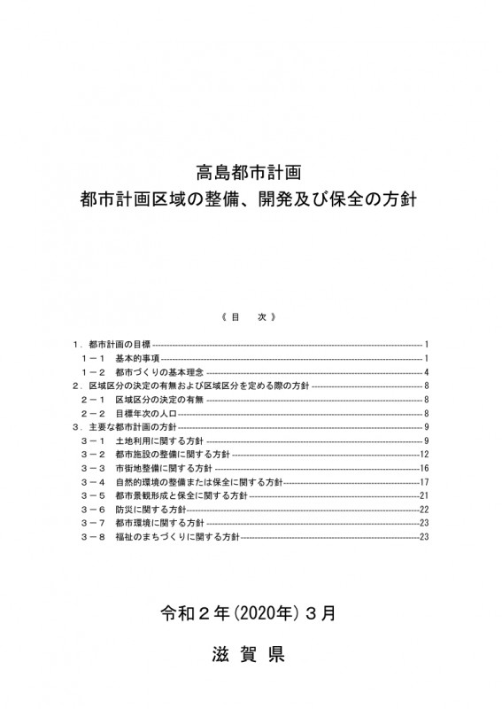 高島都市計画 都市計画区域の整備、開発及び保全の方針 [滋賀県土木交通部都市計画課][編] 滋賀県/大津 令和2年(2020年) 1501020 |