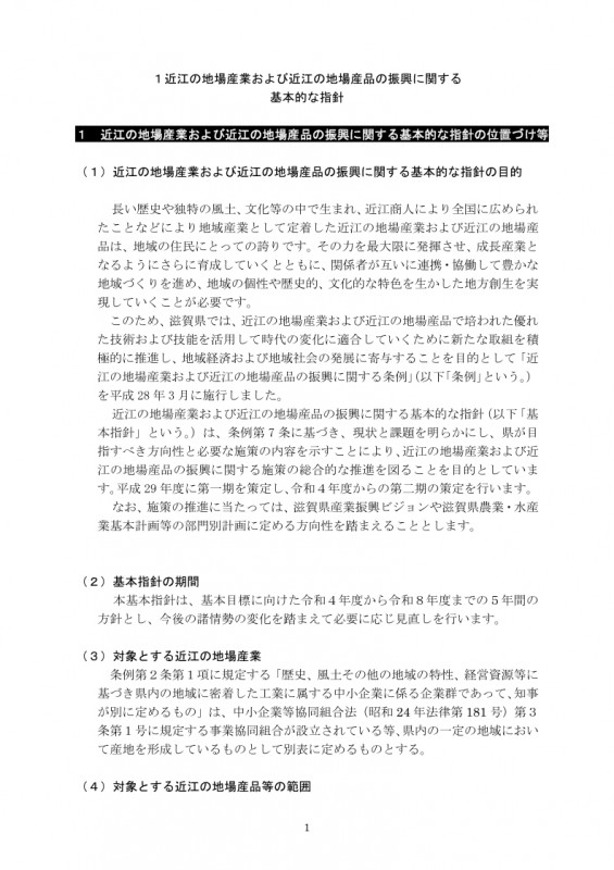近江の地場産業および近江の地場産品の振興に関する基本的な指針