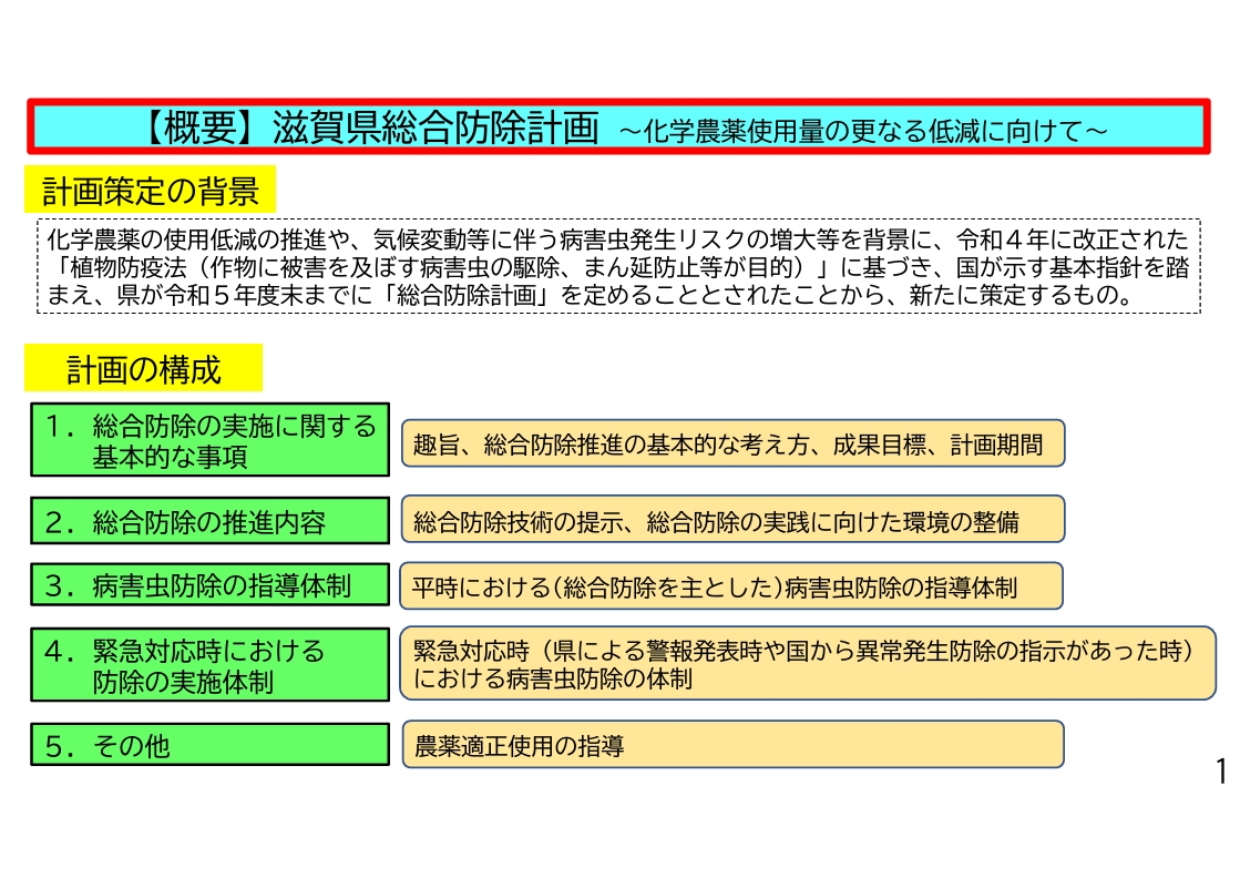 【概要】滋賀県総合防除計画/化学農薬使用量の更なる低減に向けて