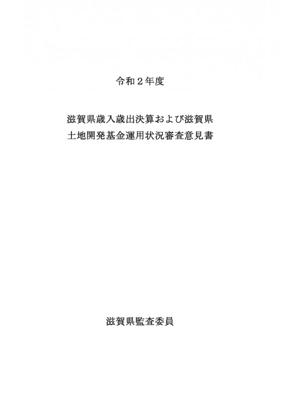 滋賀県歳入歳出決算および滋賀県土地開発基金運用状況審査意見書/令和2年度