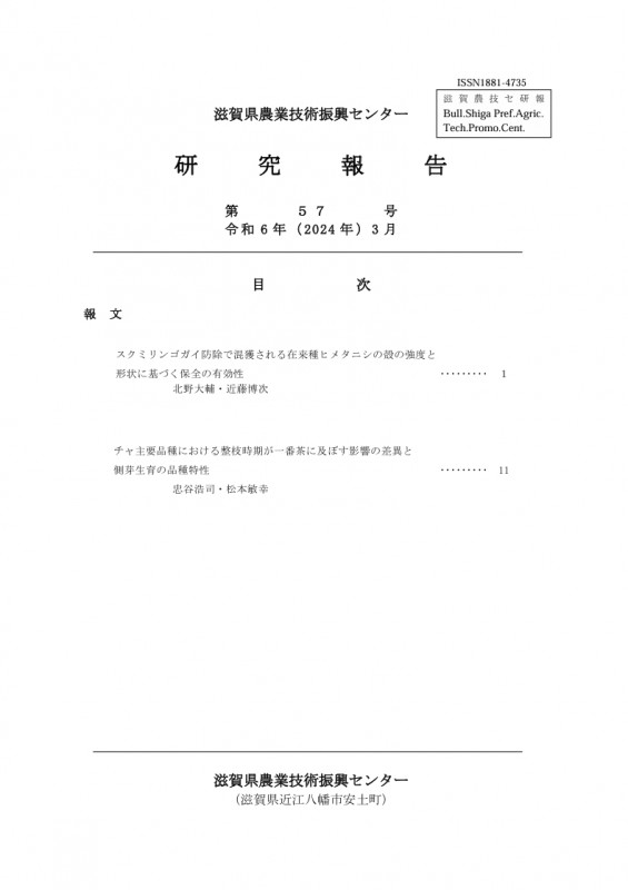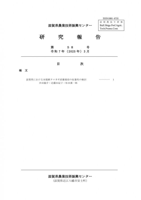 滋賀県農業技術振興センター研究報告/第57号 農業技術振興センター編集委員会編集 滋賀県農業技術振興センター/近江八幡 令和6年(2024年) 1501313 |