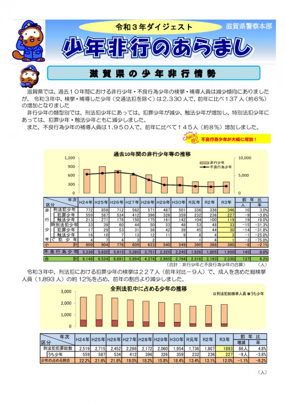 少年非行のあらまし/ダイジェスト/令和3年 [滋賀県警察本部生活安全部少年課][編] 滋賀県警察本部/大津 [令和4年(2022年)] 1501209 |