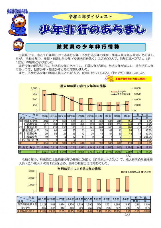 少年非行のあらまし/ダイジェスト/令和4年 [滋賀県警察本部生活安全部少年課][編] 滋賀県警察本部/大津 [令和5年(2023年)] 1501210 |