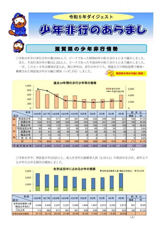 少年非行のあらまし/ダイジェスト/令和5年 [滋賀県警察本部生活安全部少年課][編] 滋賀県警察本部/大津 [令和6年(2024年)] 1501211 |