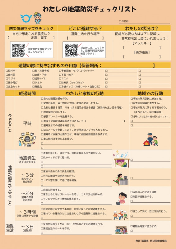 わたしの地震防災チェックリスト 滋賀県知事公室防災危機管理局[編] 滋賀県/大津 [令和8年(2026年)] 1501439 |