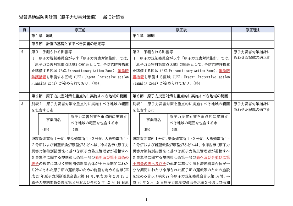 滋賀県地域防災計画(原子力災害対策編)新旧対照表/[令和4年3月修正]